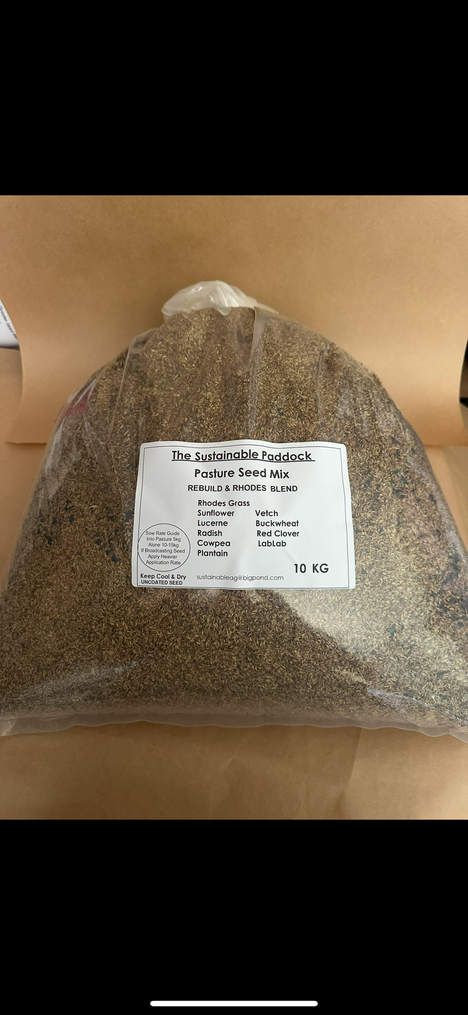 Just like our Popular Rebuild original mix however we additional of Rhodes Grass - For those wanting to add this in to pasture, where Bulk rebuild seed mix will be quicker growing and help soil health and diversity, and Rhodes will follow in later as a grass diversity plant (as Rhodes Grass is slower to develop) perfect multi action seed mix for creating microclimate and plant height landscape story